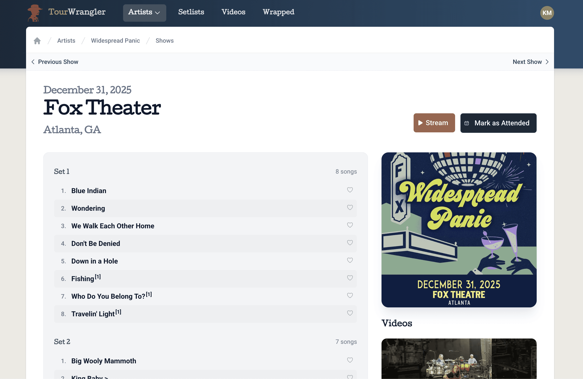 - See detailed statistics about your concert history. Track venues, states, and your most-seen songs.